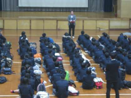 2月8日(金)いよいよ明日,2月9日(土)から京阪神の私学入試が始まります。本日5限,受験する3年生が体育館に集合して事前指導が行われ,校長先生と学年主任の先生からの激励と,進路指導主事の先生から入試に向けての注意等の説明がありました。明日は早めに家を出て,余裕を持って会場に着けるようにしましょう。教職員一同,皆さんの健闘を心から願っています。がんばれ旭中生!!