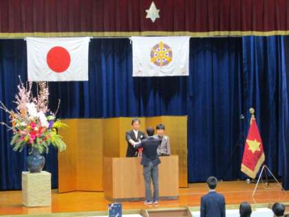 国歌斉唱,校歌斉唱のあと卒業証書授与となりました。校長先生と3年学年主任の先生が登壇し,一人ずつ卒業証書が授与されました。