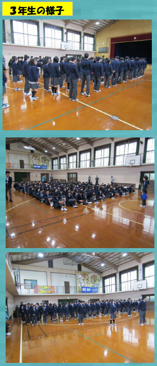 4月10日(水),1〜3年の年度初めの学年集会が行われました。学年の先生方のお話があり,生徒たちは気を引き締めて聴き入っていました。これからの1年間,よろしくお願いします!
