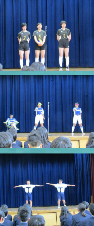 部活動紹介に続いて,2年生・3年生から合唱やパフォーマンスのプレゼントもありました。