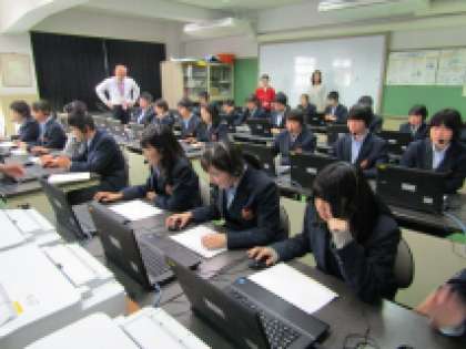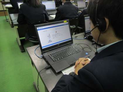 4月18日(木),全国学力・学習状況調査 英語「話す」の様子です。一人一人ヘッドセットをつけて,パソコン画面を見ての「話す」ことの回答をします。