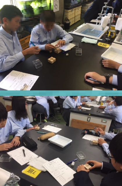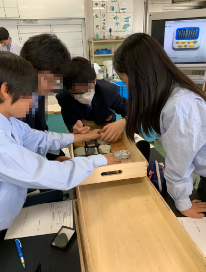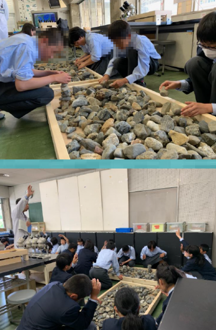 科学センターでは,クラスごとに,地学領域…「川原の石」,生物領域…「森のおくりもの」,化学領域…「目には見えない気体の世界」,物理領域…「センサーの科学」について学習します。