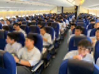 飛行機は定刻通り,10時25分に無事に那覇空港に到着しました。着陸時(タッチダウン)には機内に大きな拍手が沸き起こりました!