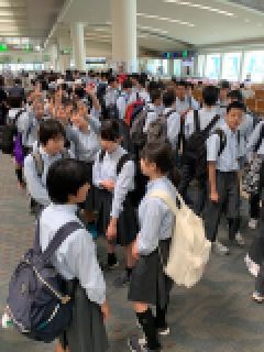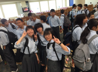 那覇の天気は晴れ,気温は26度。いい感じです。観光バス3台に分乗して,平和記念公園に向かいます!