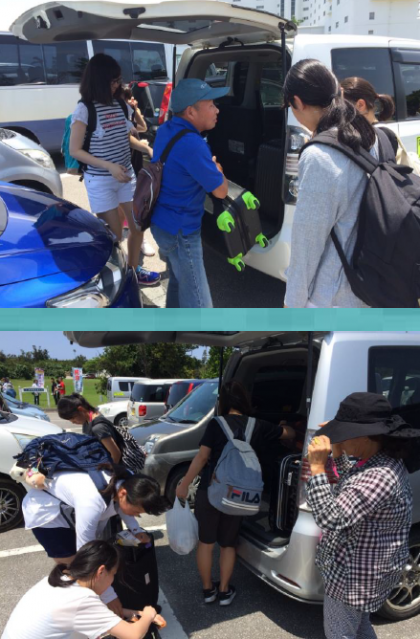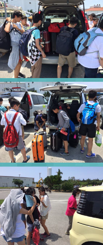 おじい おばあ に送って貰って次々とホテルに集まってきています。全員が揃ったら離村式です!