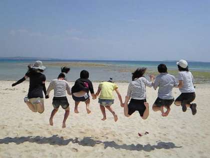 伊江ビーチでは,本州の海とは全く違う青い海を楽しんでいます。民家体験もあと少しですね。