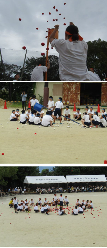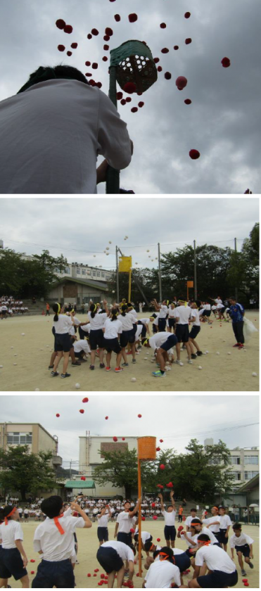 続いて,色別対抗玉入れ(1・2・3年 男女)が行われました。