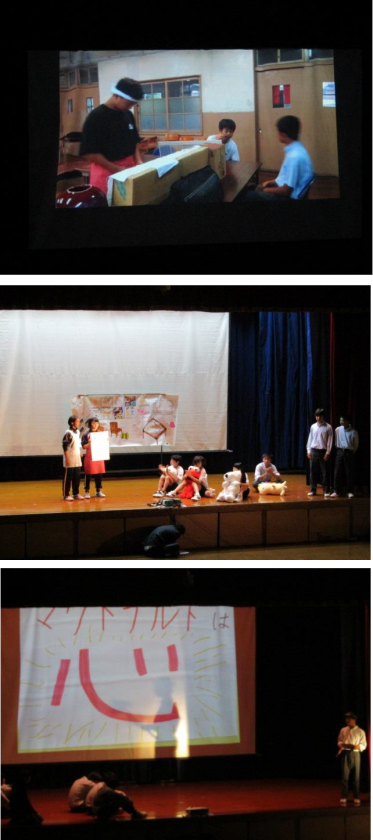 主人公の2年生が働くことについて,チャレンジ体験を通して学んだことをドラマ仕立て・劇風に発表します。