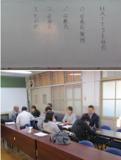 11月6日(水)旭丘中会議室においてHATTの4校の主任の先生方が会議を行いました。小中連携の取組の1つです。