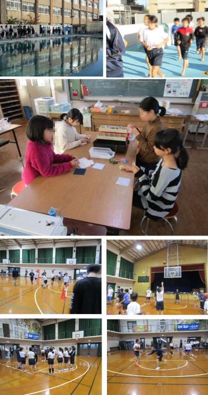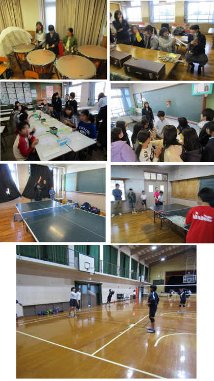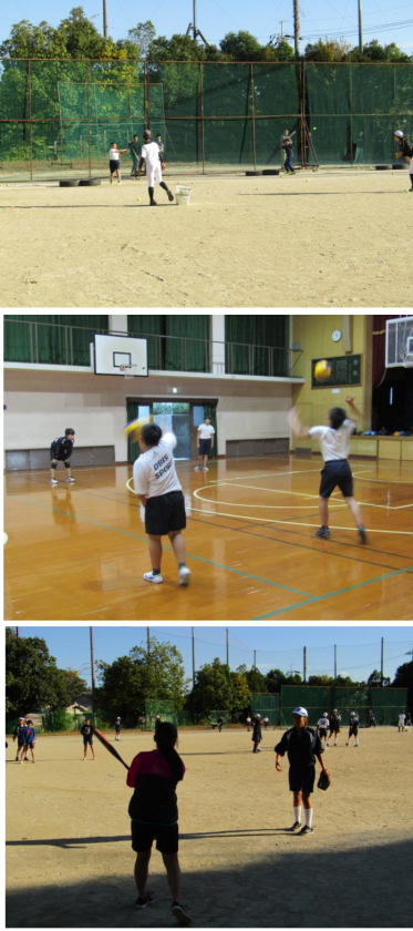 体験入部では中学生の先輩が優しくていねいに指導をしていました。