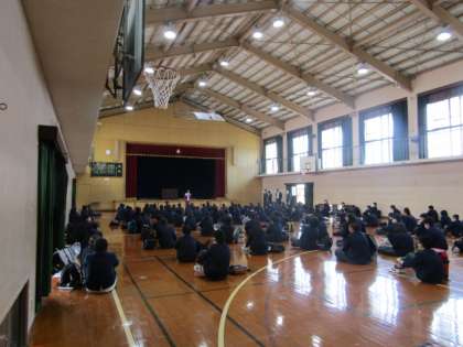 3年生の学年集会と1組の学活の様子です。