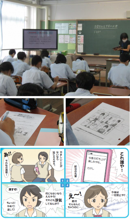 その中で「他の友達としゃべってはいけないと言われた。」「携帯を勝手に見られて、友達のメール(ライン)アドレスや 電話番号を消された。」などの交際相手のとった行動が,実は,10〜20代に増えてきているデートDV(恋人同士のあいだで起こる暴力など)に当てはまる事例であることを学びました。