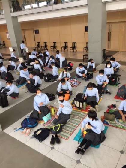 午前の部が終わり,昼食休憩です。できるだけ距離を置いたり,同じ向きで黙って昼食をとるなど,密を避ける行動をとってくれています。残すところは,午後の部の吹奏楽部発表のみとなりました。