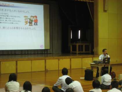 7月7日(木),京都府北警察署生活安全課から2人の講師をお招きして,2年生を対象に「非行防止」をテーマに授業をしていただきました。