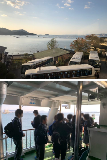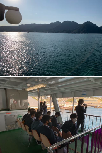 修学旅行(17)フェリーで宮島へ向かっています。