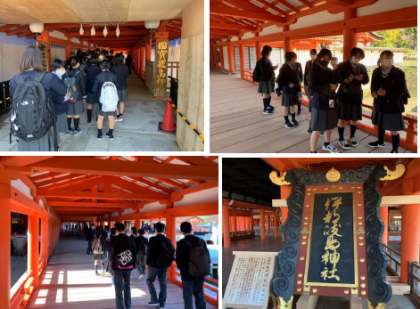 厳島神社到着しました。ガイドさんに案内していただきながら,拝観です。