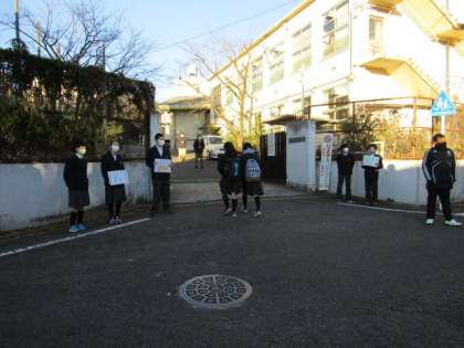 1月8日(金),今朝は気温が氷点下を記録する冷え込みとなりました。そんな中,生徒会のみなさんが校門で「HATTあいさつ運動」を行い,登校してきた生徒や,通りすがりの地域の方に,さわやかな朝のあいさつをしてくれました。寒い中での早朝からの活動,本当ご苦労様でした!