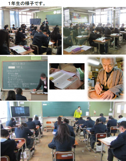 1年生は,杓子(しゃくし)に代表される「宮島彫り」に携わる方の郷土への思いに感銘を受けた中学生の文章から,「郷土」を心のテーマに学習しました。中学生のみなさんは,まだ「生まれ育った郷土への思い」を実感する機会は少ないかもしれませんが,みなさん自身も地域に生活する人々の関りの中で生活できていることを知って,郷土を大切にする気持ちを深めていけると良いですね。