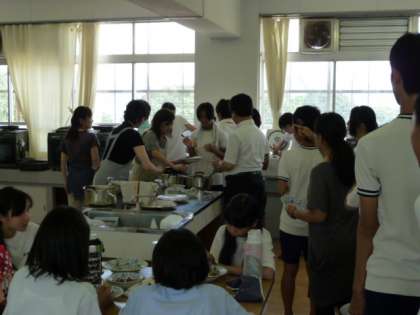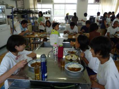 レクリエーション大会が終わると、待ちに待った昼食の時間です。PTAの方々が朝早くから用意していただきました。午前中に新しく仲良くなった友と一緒に食事です。午後からの活動も楽しみですね。
