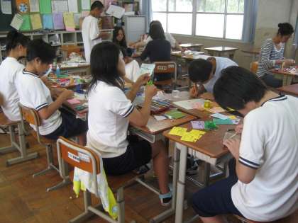 PTAの皆様にもご協力いただき,この「交流会」の様々な準備に心をこめて手間ひまをかけました。来校いただいた皆様にお渡しする「お元気ですカード」を作っています。