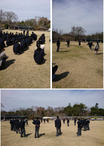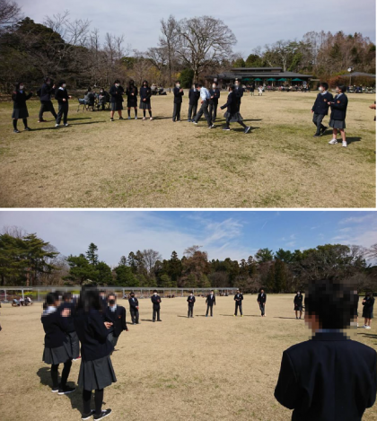 今からレクレーションタイムです!1つめの「華やかしましょ」ゲームです!4つのグループに分かれて楽しんでいます。
