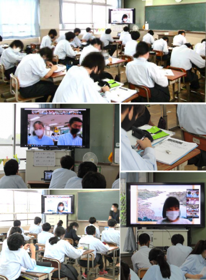 3年生は「総合」で修学旅行の事前学習を進めていますが,当初行く予定であった長崎に関係する平和学習のひとつとして,「長崎文化歴史博物館」の方とZoomによる交流を行いました。各クラスで考えた質問を集約し,代表生徒がZoomで質問し,現地の方に回答していただきました。実際に長崎を訪れることはできませんでしたが,オンラインでお話を聞くことができ,貴重な時間となりました。今後,「長崎原爆資料館」などの方々とも交流を予定しています。