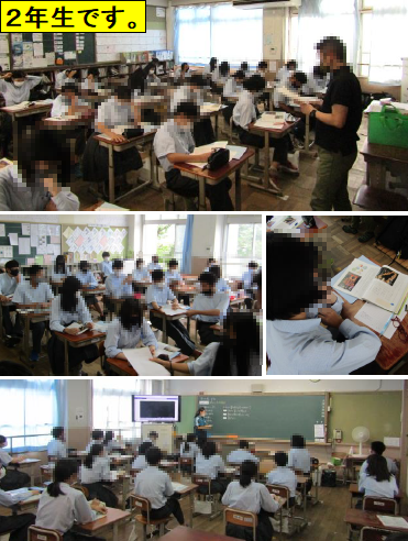 2年生は,秋田の伝統的な「竿燈祭り」を紹介している映像と秋田の中学生が記した作文で,「郷土に生きる自分」を心のテーマに学びました。中学生の筆者が,観光客に竿燈祭りのことを一生懸命に説明しているうちに,改めて地域の良さを認識し,地域の一員として郷土と向き合っていこうとしている気持ちが綴られていました。その姿から,私たも郷土の良さを知り,そこに生きる自分にできることは何かを考えました。