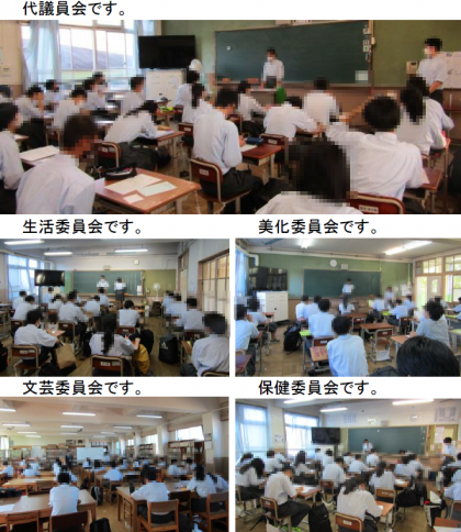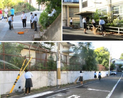 「代議・専門委員会」は今日が前期の最終で,各委員会ごとに,これまでの活動の「ふり返り」などを行いました。「クリーンデー」の取組は,天候等によりこれまで実施できていなかったため,今日が今年度初めての実施となりました。代議・専門委員会と並行して,部活動に所属している委員以外の人たちで,校舎や周辺の美化活動を行ないました。笑顔で活動しているみなさんの姿を見て,とてもさわやかな気持ちになりました。お疲れ様でした!そして,ありがとう!