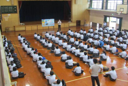式に先だって,クラス別・班別・バス乗車別など,それぞれの集合隊形の確認を行いましたが,皆さん黙々と素早く行動している姿に,まず感心しました。結団式では,校長先生からの激励の言葉,実行委員さん達からのお話,学年主任の先生からのお話などがありましたが,聞く態度も立派で,修学旅行を迎えるみなさんの「心がまえ」が伝わってくるようでした。当日は集合時間も早いので,最後まで気を抜かずに生活リズムを整え,健康状態にはくれぐれも留意して下さいね。特に前日は,たとえ眠れなくても早めに布団に入りましょう!
