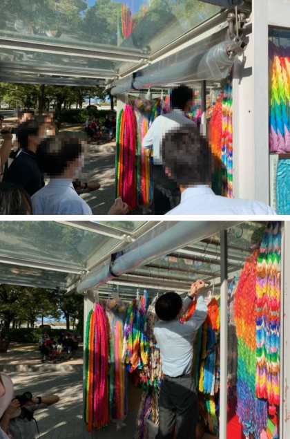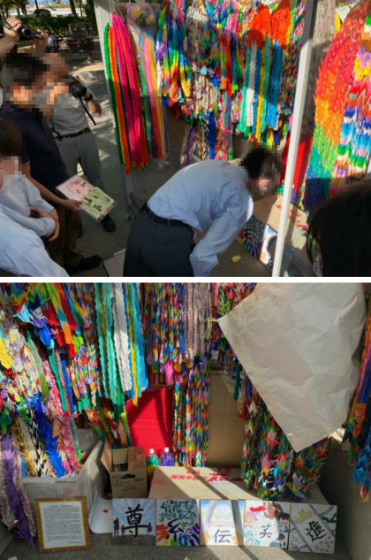 平和セレモニーのあと,みんなで願いを込めて折った「折り鶴」と想いを込めた色紙を奉納しました。