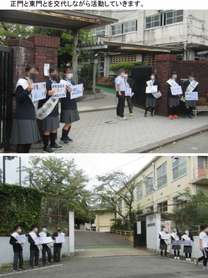 生徒会本部役員改選に向けて,今日10月13日(水)から立候補者による「選挙活動」がスタートしました。19日(火)の投票日まで,毎朝校門で候補者のみなさんが,みなさんへ呼びかけます。また,明日からは昼休みに候補者が各教室をまわります。選挙公約などを聞きながら,みなさん自身の目でしっかり見極めて投票できるようにしましょう!