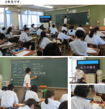 2年生は,今週から「ローテーション道徳」が始まりました。あるクラスでは,「0.01の努力」という心のテーマで,あるエピソードや曲を聴いて,テーマについて考えました。次は,どの先生がどんな道徳をしてくださるのか楽しみですね。