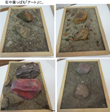 1組の美術や技術家庭科などの授業で制作した作品展です。ひと針ひと針,根気良く仕上げた「刺しゅう」や石や葉っぱを使ったアート作品,おしゃれな手作りマスクなど…。とても仲良しで,毎日楽しそうな1組の雰囲気が伝わってくる作品展です!