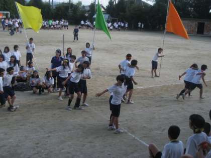 2日間にわたる体育の部でした。運動の得意な人も苦手な人も全力を尽くし,そんな姿にみんな分け隔てなく応援し,係りの仕事はそれぞれの責任をしっかりと果たすことができました。4人の応援団長さんは,砂ぼこりの中も小雨の中も,大きな旗を振りみんなを実によくリードし学校祭体育の部を大成功に導きました。