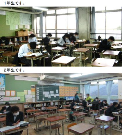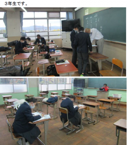 11月11日(木),テスト前学習会2日目です。放課後の時間帯に各学年2教室に分かれてテスト勉強に励んでいます。お家で頑張っている人も,塾で鍛えてもらっている人も,みんなみんな頑張れ〜!!