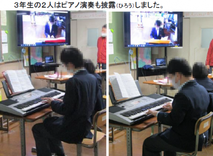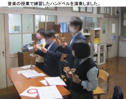 今日12月13日(月),1組では「紫野授産所交流会」がありました。加茂川中学校と合同で,当初は紫野授産所に集まって行なう予定でしたが,感染症対策のため急きょZoom配信によるオンラインでの交流になりました。各所からの自己紹介や出し物などを行ない,旭中からは歌やハンドベル,ピアノ演奏を発表し,楽しく交流を深めることができました。