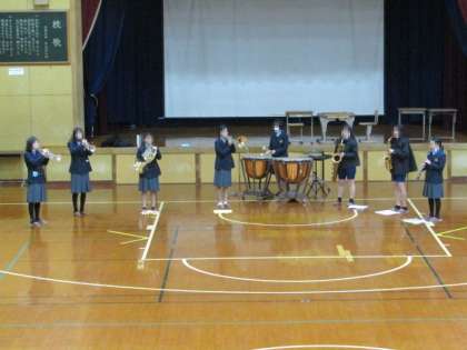 吹奏楽部が明日,京都コンサートホールで開催される「京都府アンサンブルコンテスト」に出場します。新年早々にも関わらず,今日はそのための最終リハーサルを体育館で行いました。みなさんのご健闘を心から応援しています!金賞を目指して頑張って下さい!