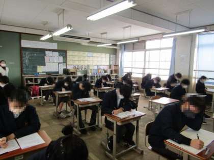 今日1月21日(金),3年生は「学年末テスト」の最終日でした。朝から雪が降り積もり,心配しましたが,大きく遅れてくる人もなく,予定通りテストを始められました。もしかしたら,入試当日も同じような状況が起こるかもしれません。そのためにも早めの行動を心掛けましょう。また,このコロナ禍の中にも関わらず,無事テストを実施できたのは,みなさんやお家の方の協力あってのことです。ありがとうございました。次は,いよいよ入試本番!引き続きみんなで頑張っていきましょう!