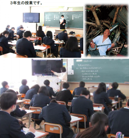 3年生は,奄美大島を舞台にした「島唄の心を伝えたい」という実話から,「伝えたい心」を心のテーマに学びました。島唄に込められた島の人々の心や,歌い継がれてきた歴史について考え,旭丘中学校で歌い継がれてきている「校歌」についても,どのような思いで歌い継がれてきたのかを考えました。卒業式でも「静聴」という形になるかもしれませんが,心の中で,どのような気持ちで歌うのか…思いを深めることができました。