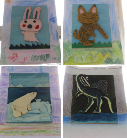 2月3日〜6日に予定されていた「小さな巨匠展(京都市立小・中学校育成学級等大合同作品展)」が,新型コロナウイルス感染の増加に伴い,残念ながら急きょ開催を中止となりました。そこで,,「1組ミニ作品展」として,出品予定だった作品を校内に展示しています。個人作品,共同作品,それぞれ色鮮やかで心が明るくなるような力作です!