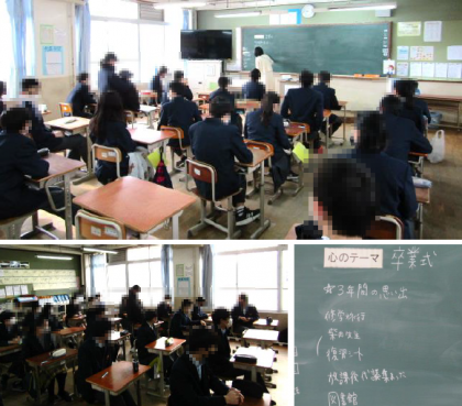 昨日「公立中期選抜」を終え,ひとまずは入試が一区切りした3年生は,今日3月9日から「卒業前行事」に入りました。そして,今日はその始めに,最後の「道徳」の授業を行ないました。心のテーマは「卒業式」。なぜ卒業式があるのか,その主役の一人としてどうあるべきなのかを改めて考えました。その答えをぜひ,卒業式本番に見せて下さいね。