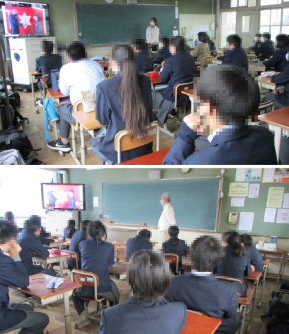 今日3月18日(金)は,令和3年度「修了式」でした。今回もZoom配信による式です。伝達表彰の後,校長先生から「卒業式」で3年生が非常に立派な姿で巣立って行ったこと,1,2年生についてもコロナ禍で制限のある中,1年間よく頑張ってくれたという思い,そして次年度へ向けてのお話がありました。生徒指導部の先生からは,春休みはしっかりと自分と向き合う時間をとり,次年度良いスタートを入れるようにというお話があり,最後は生徒会長から,これまでの生徒会活動への協力のお礼と今後に向けてのお話がありました。
