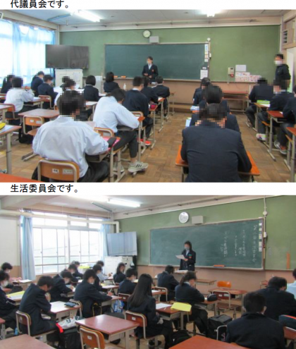 今日5月9日(月)は,第2回「代議・専門委員会」がありました。今回は,主に生徒総会へ向けての学級討議で,各クラスから出た意見などについて話し合いを行ないました。また,委員会独自の活動も行なわれていました。委員のみなさん,お疲れ様でした。