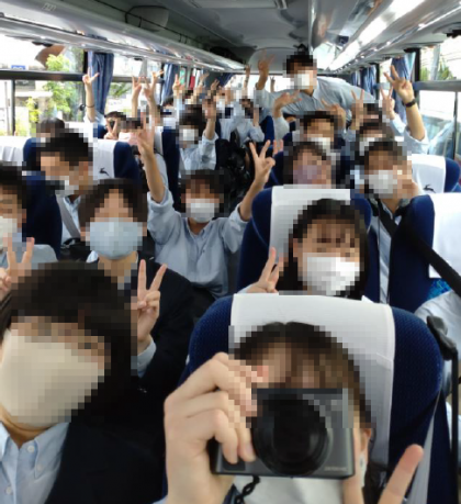 修学旅行(2)出発式&バス車内