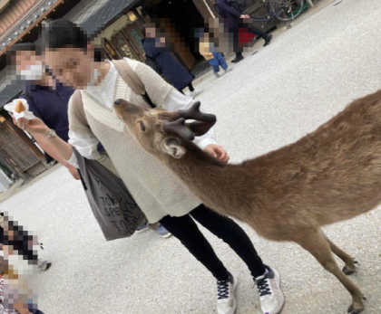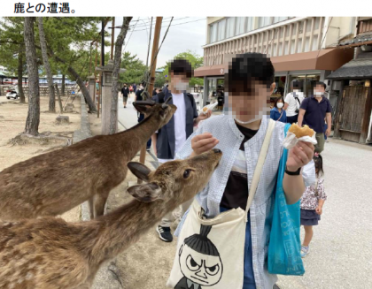 みんな楽しそうです。シカとの遭遇も。