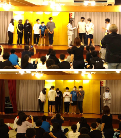 レクの表彰。優勝は,5組4班,2位は2組3班,3位は3組2班でした!おめでとうございます!