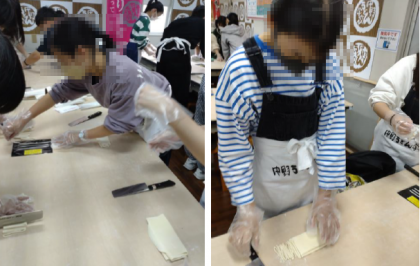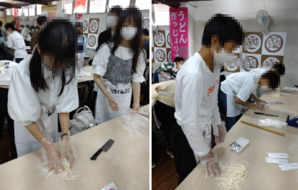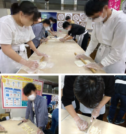 熱心にうどん作りに励んでいます!おいしいうどんができますように!