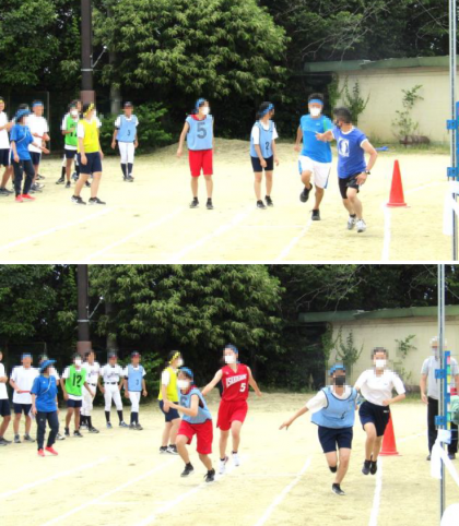 午前の部の最終種目は,「部活動対抗リレー」です。各部,部のプライドをかけ,走り抜きます!女子の部には,なぜか見慣れないチームも参戦…。