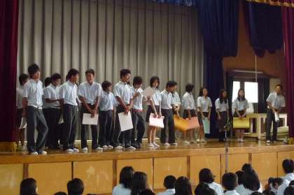 18日からの夏休みの前に,全校集会が行われました。校長先生からのお話と各部活等の表彰,美化コンクールの表彰がありました。水の事故などに気をつけて,元気に夏休みを過ごしてください。