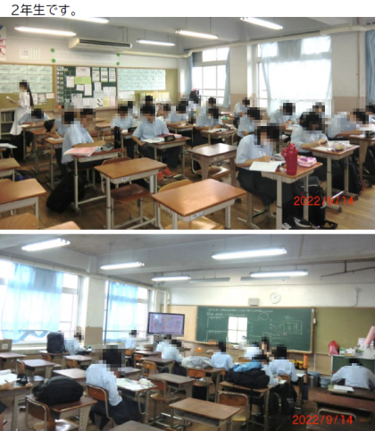 今日9月14日(水)、第2回定期テスト1週間前に突入しました。「テスト前学習会」は2日目となり、全学年2教室に分かれ、質問したり、教え合ったり、黙々と問題を解いたり…とそれぞれ学習に励んでいます。一部の運動部では、週末に大会を控えているため、部活動と学習の両立に励んでいる人もいます。どちらもみんな、頑張れ〜!